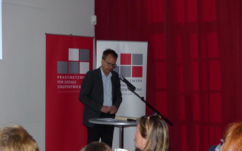 Der Saal im Hainhölzer Kulturhaus war randvoll gefüllt, als am vergangenen Dienstag, Sven Dunker, Vorsitzender der LAG Soziale Brennpunkte Niedersachsen, und Antje Möllmann, Geschäftsführerin des Deutschen Kinderschutzbundes Landesverband Niedersachsen, den Startschuss für die Tagung „Ankunftsorte – Ankommen im Gemeinwesen“ gaben.