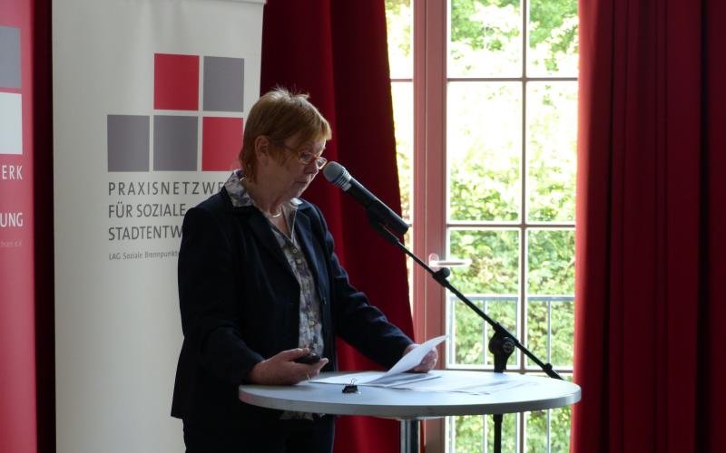 Im Anschluss argumentierte Dr. Thomas Franke, vom Deutschen Institut für Urbanistik und vor dem Hintergrund der Erfahrungen des Programms Soziale Stadt in erster Linie für zweierlei: 1. Die Wichtigkeit der ressortübergreifenden Zusammenarbeit sowie eines integrierten Handlungskonzeptes, dass zum Beispiel durch die Einrichtung einer Stabsstelle begleitet werden könnte und 2. Die Möglichkeit der Übertragung von gesammelten Erfahrungen aus den insbesonderen städtischen Räumen auch in kleinstädtische bis ländliche Gebiete.